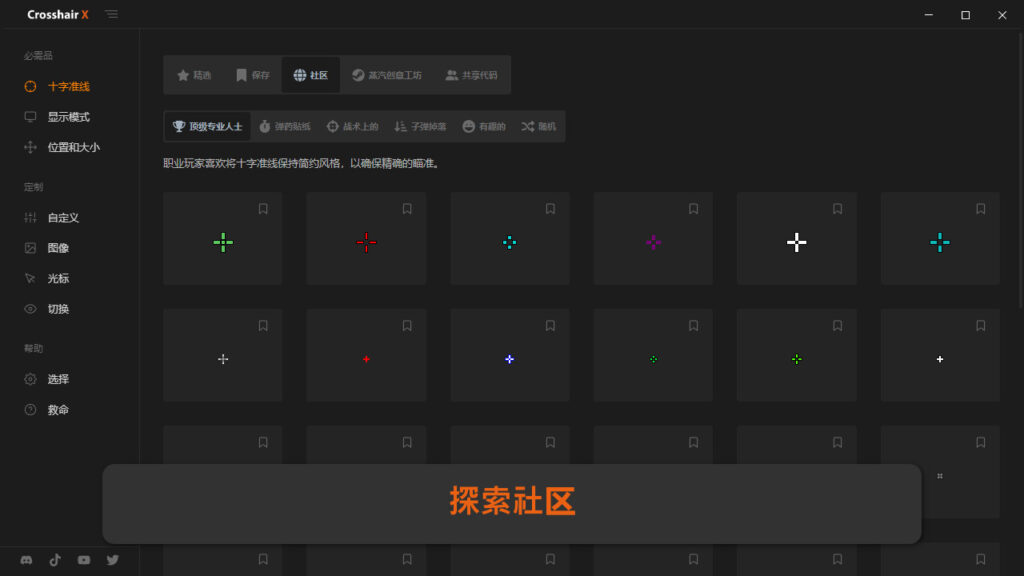 能将定制的十字准星覆盖于您的所有游戏。可以从 Crosshair X 社区中创建的数千种独特的十字准星中选择,或者使用“自定义”界面设计属于自己的准星。