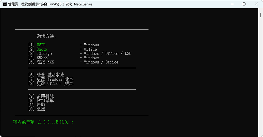 Microsoft Activation Scripts(MAS中文版)KMS激活脚本是一款多合一微软激活脚本,支持激活所有Windows,Office产品.整合激活方式包括:HWID永久激活,TSforge永久激活,Ohook激活,KMS38激活至2038年,在线或本地KMS激活180天,支持更改Win10/11许可证密钥和系统版本,MAS激活工具代码开源,绿色小巧不报毒.